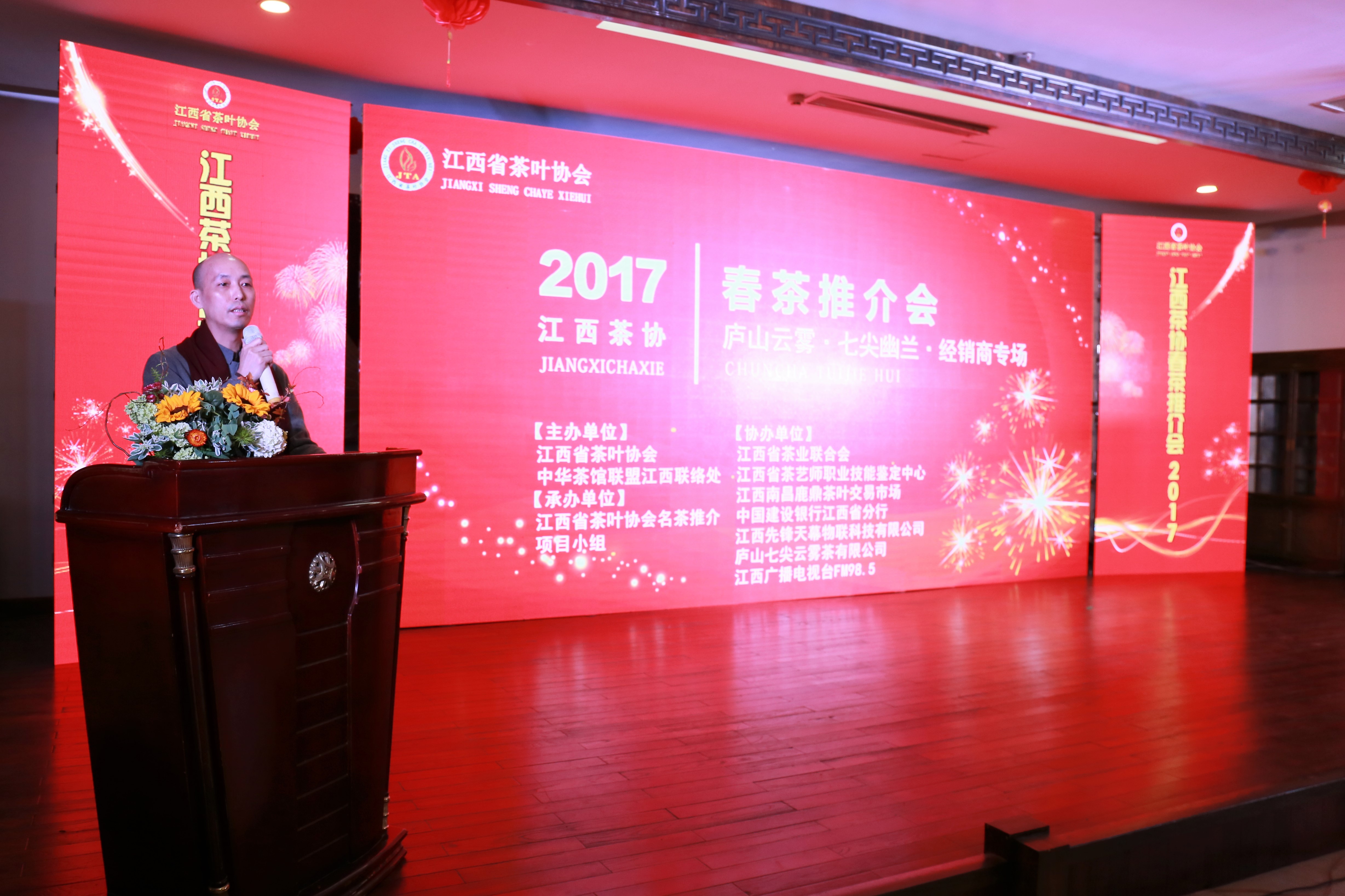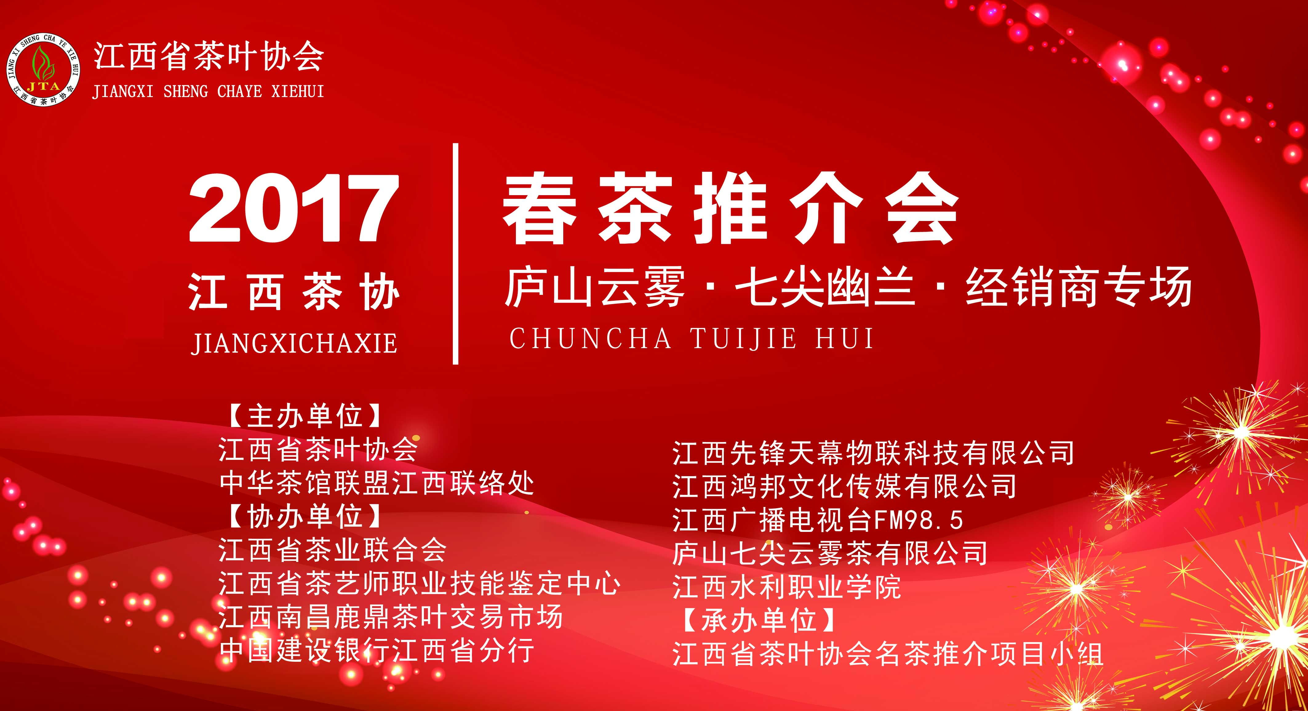 本次江西省茶叶协会2017春茶推介活动是由江西省茶叶协会与中华茶馆联盟江西联络处主办,江西茶业联合会、江西省茶艺师职业技能鉴定中心、江西南昌鹿鼎茶叶交易市场、中国建设银行江西省分行、江西先锋天幕物联科技有限公司、江西鸿邦文化传媒有限公司、江西广播电视台FM98.5、庐山七尖云雾茶有限公司、江西水利职业学院联合协办,江西省茶叶协会名茶推介项目小组承办。以“赣茶飘香,茶和天下,传承中华茶文化,我为江西茶代言”为主题,旨在帮助生产企业拓宽销售渠道,帮助茶庄茶馆便捷对接好茶,节省大量时间与资金资源,促进产能结构优化,提升现有资源价值,解决运营中的多重重复浪费问题。还在全省3500台电梯电视进行推广,并邀请全国几十家新闻媒体为本次活动全程播报。