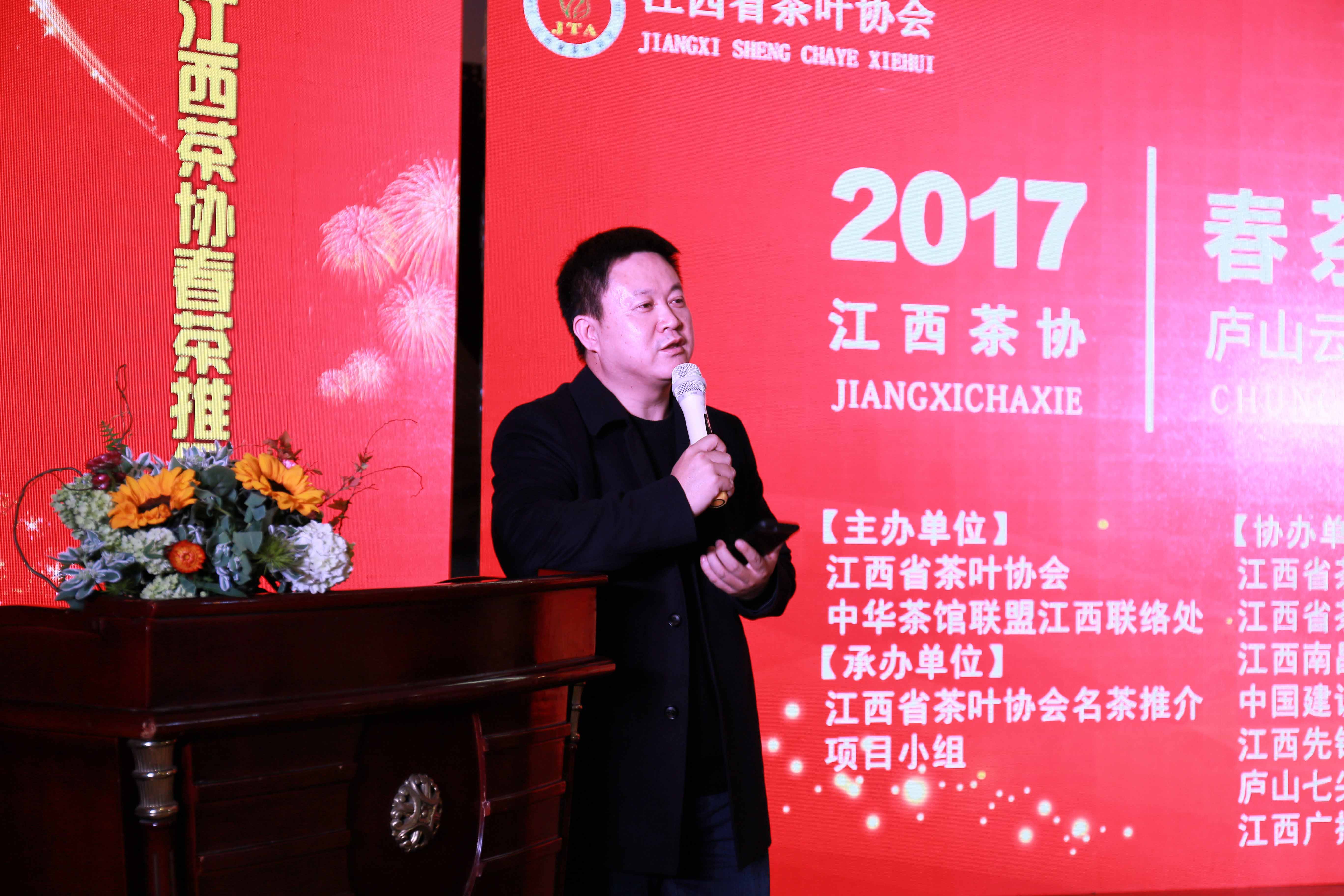 江西茶业联合会代表陈年生在讲话中表示,今天原本赵会长在此发言,因事来不了,我仅代表赵会长在此发言。首先我仅代表江西茶叶联合会预祝江西省茶叶协会举办的2017春茶推荐会取得圆满成功。也祝到会的各位先生女士们身体健康,事业有成,2017年取得更大的成就!我对江西省茶叶协会历史比较了解,至2005年以来,当时是罗会长,江西省茶叶协会为江西茶产业的发展振兴作出了大量颇有成效的贡献,我也相信以此为起点,必将在以后为江西茶产业的发展作出更大的贡献。江西省茶叶协会比江西茶业联合会,从历史来讲成立要早,江西茶业联合会是江西省政府下发2008年第59号文件以后组建,为江西茶业发展也做了较多的工作,江西省茶叶协会和江西茶业联合会携手与共,不像有些人在社会上瞎说,讲我们不团结,纯属子虚乌有。我们拥抱在一起,曾经开展过很多活动,最显著的是2013年江西省十大名茶评比,就是我们两家联合主办的,之后还联办了许多活动。江西茶产业在取得现有的基础上,将迈出更大的步伐,取得更多的成功,江西省茶叶协会和江西茶业联合会必将更好的紧密的协作,共同的把江西茶产业的事业发展壮大起来,谢谢合位!