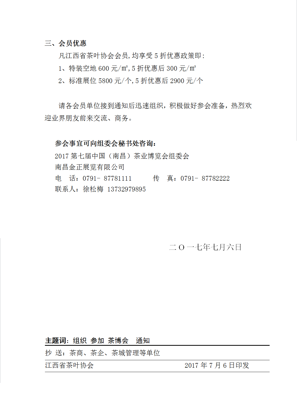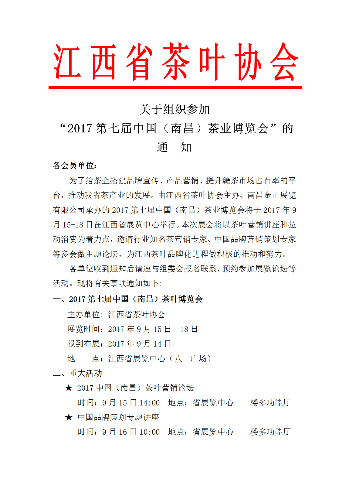 关于组织参加“2017第七届中国(南昌)茶业博览会”的通知