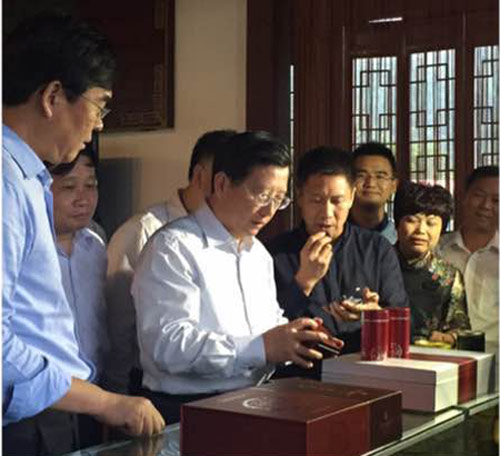 在犹江绿月生产车间,强卫书记一边走,一边看,一边问,看的认真,问的仔细,详细了解了公司标准化制茶过程及产品市场销售情况,认真听取致富带头人陈有良关于公司发展情况汇报,对公司以“公司 合作社 基地 农户”的模式,创新“茶旅”致富路,以龙头带动全民共同致富的做法给予充分肯定。强卫指出,要依托当地优越的生态文化等资源优势,以茶产业为载体,坚持茶产业与旅游业相结合,以“接二连三”为路径,加快现代休闲农业发展,把上犹县园村打造成全国乡村旅游示范点。